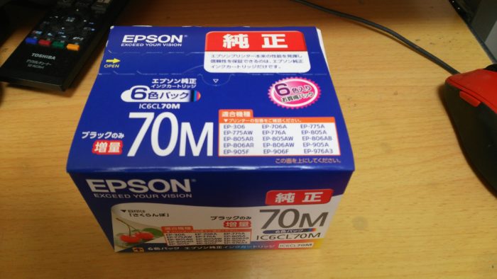 EPSON純正インクを買ってきました。リサイクル品はちょっと不安だったので今回はパス。