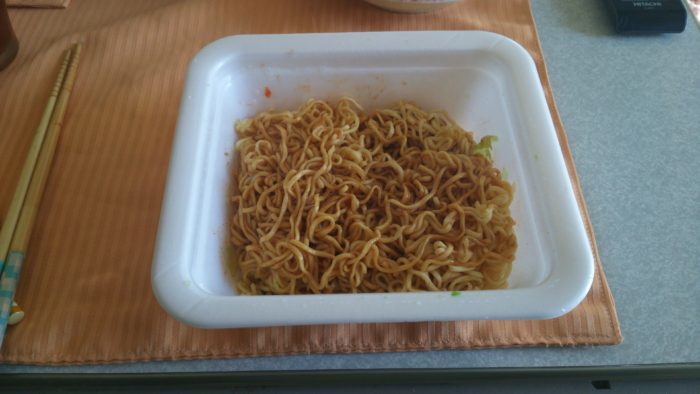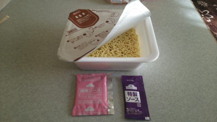 パッケージの横には、「甘辛い醤油をベースにフルーツと野菜をブレンド。えびの風味がかくし味の甘さと辛さがクセになる味わいのやきそばです。」とありました。