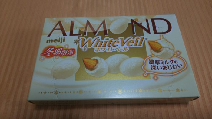 今日は、meijiALMONDチョコのホワイトベールを食べました。近くのイオンで購入しました。