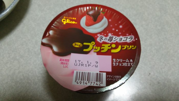 今日は、グリコのBigプッチンプリン冬の苺ショコラを食べました。