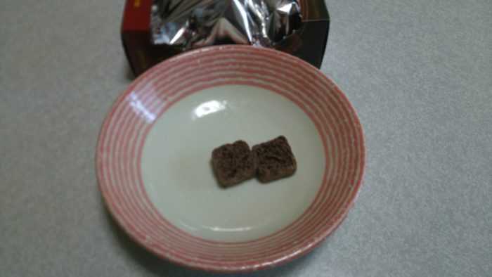 食べてみると、チョコ感が強いです。たくさんのチョコが浸み込んでいる感じです。そんなに甘くなく軽い感じなので数行けそうです。