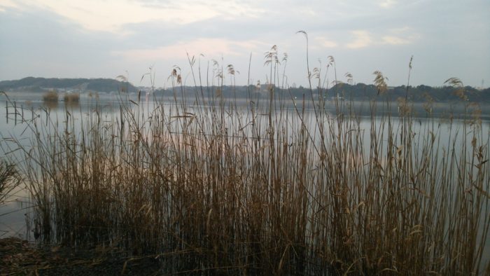 岸辺の芦原。汚くて昔は岸壁に魚の死骸などが浮かんでいたような湖でしたが最近は綺麗になってきたようです。