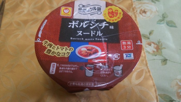 今日は、マルちゃん世界のグル麺ボルシチ味ヌードルを食べてみました。