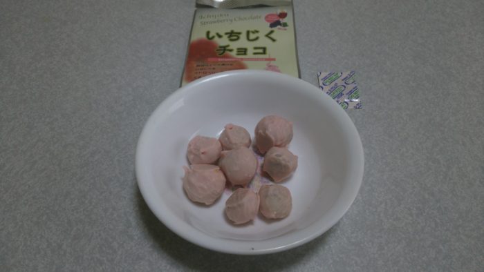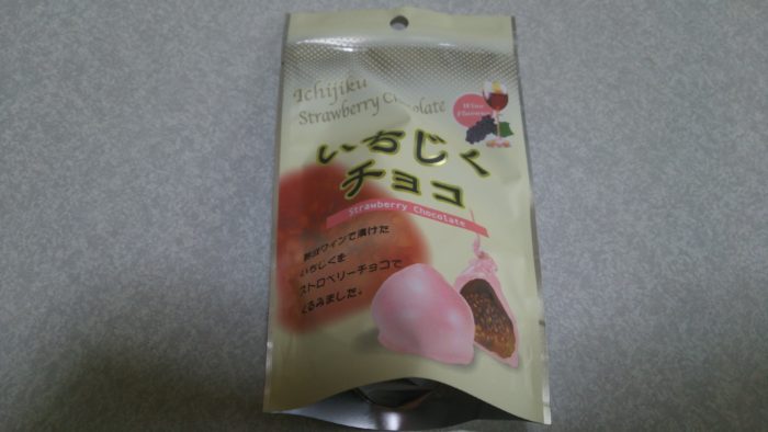 熟成ワインで漬けたいちじくをストロベリーチョコで包みましたとのこと。
