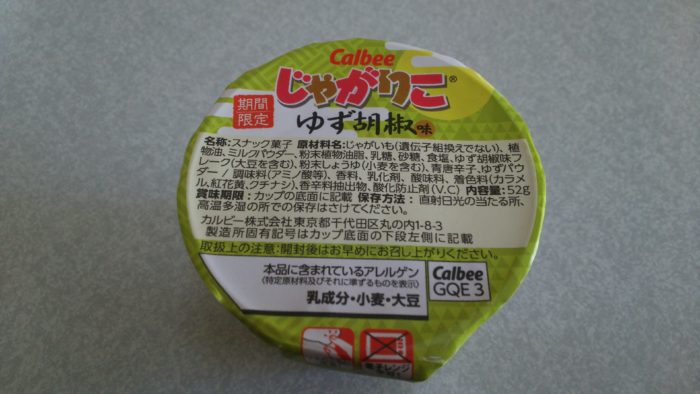 今日は、カルビーのじゃがりこゆず胡椒味を食べてみました。