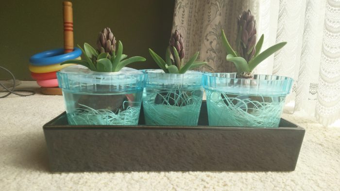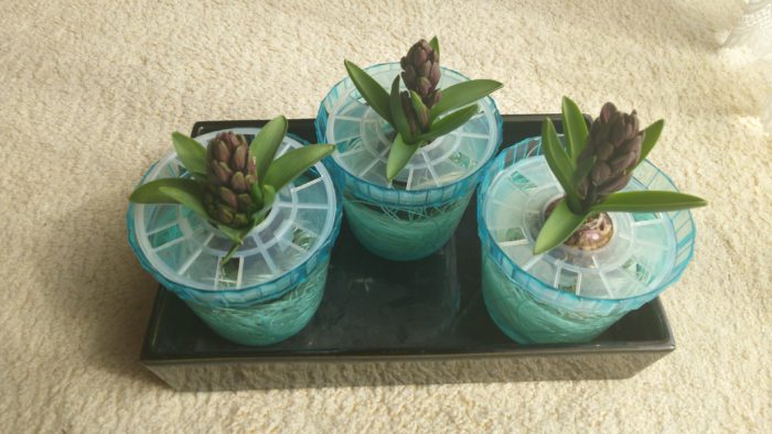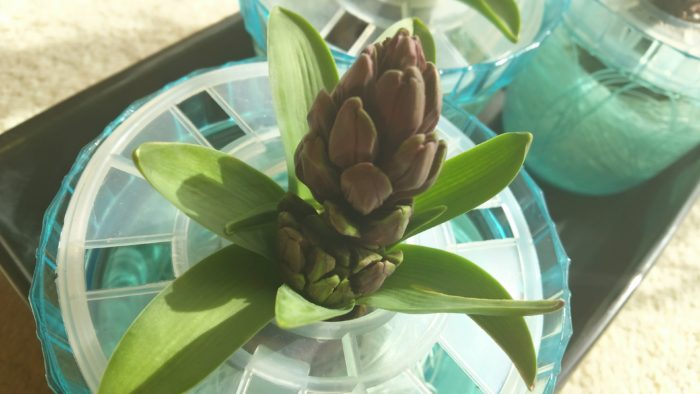 何色の花が咲くのでしょう?つぼみは赤っぽいけど・・・。やっぱり青かな。
