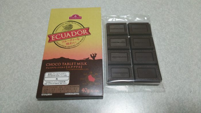 今日は、イオンで買ったトップバリュのチョコレート、「チョコタブレットミルク エクアドル」を食べてみました。