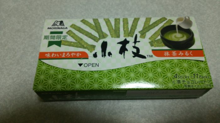 今日は、森永の小枝 期間限定 味わいまろやか 抹茶みるくを食べてみました。
