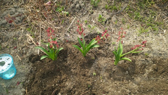 今日は、花が終わったヒヤシンスを畑に植えてきました。