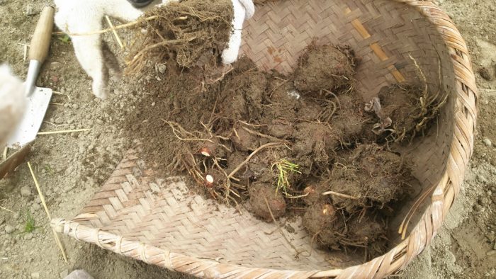 里芋をまず掘り出します。