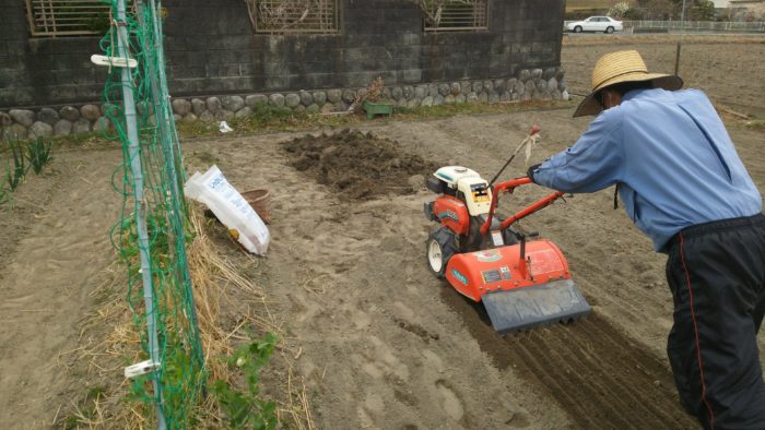 畑を耕運機でおこして、畝を作ります。