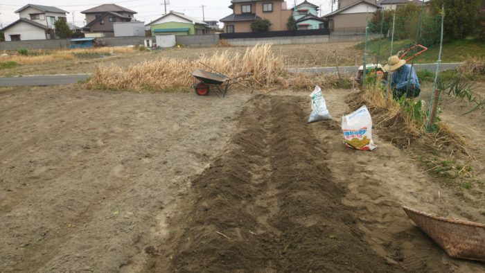 植えていったら、二畝になりました。どのくらい芽が出るかわかりませんが、収穫が楽しみです。