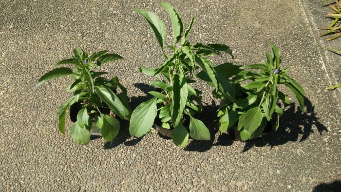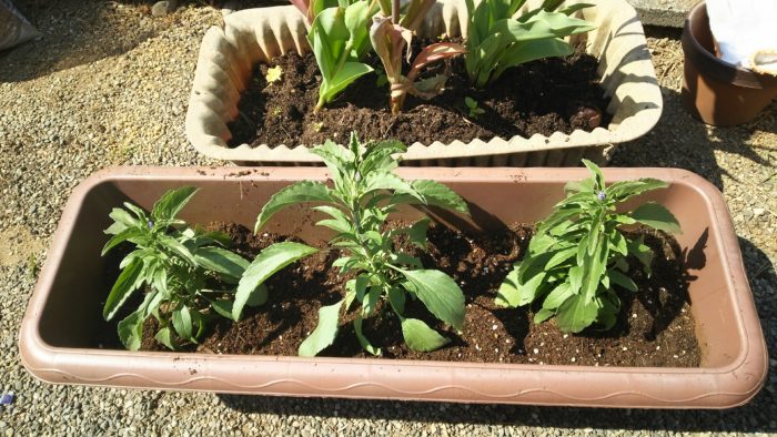 プランターに、青いサルビアの苗を植えました。