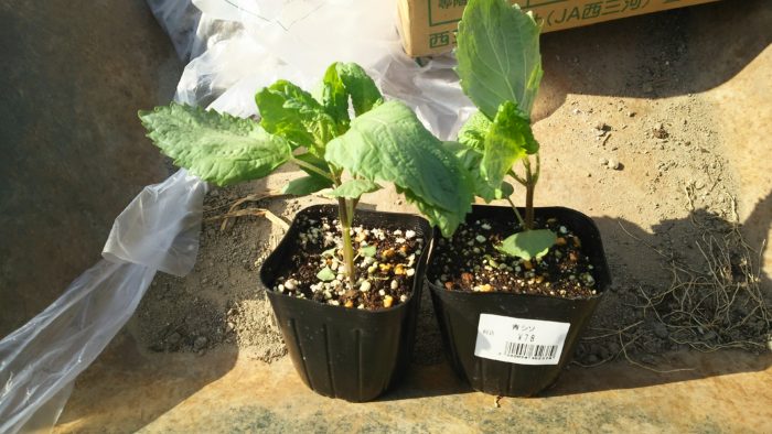 シソの苗を買ってきました。ダメになる可能性を考えて二本買ってきました。