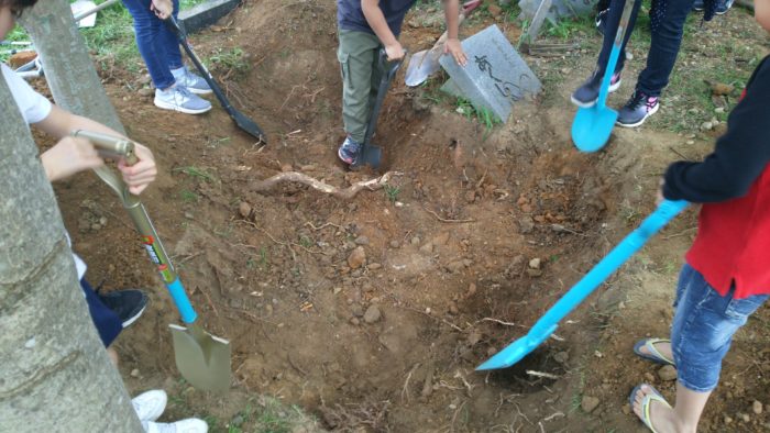 今日は、小学校で埋めたタイムカプセルを掘りに行きました。