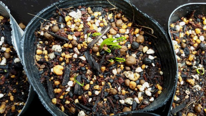 ポットから、発芽です。