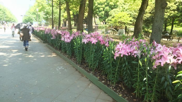 日本大通りに向かう通路は、ユリでいっぱい。