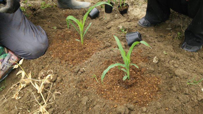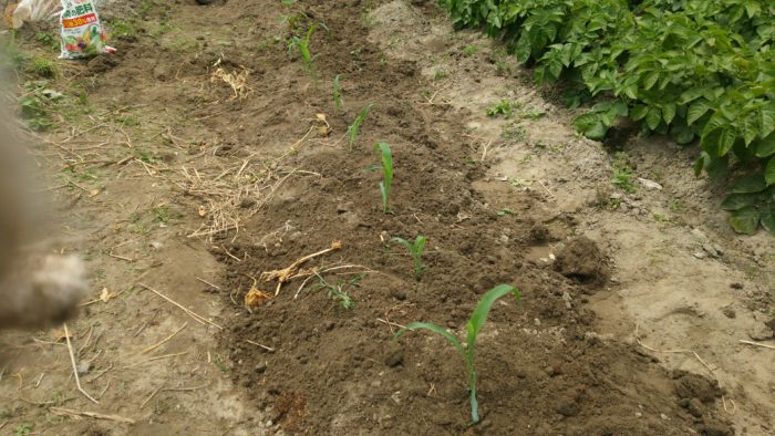 トウモロコシの苗を植えました。