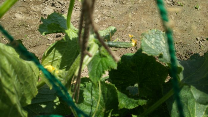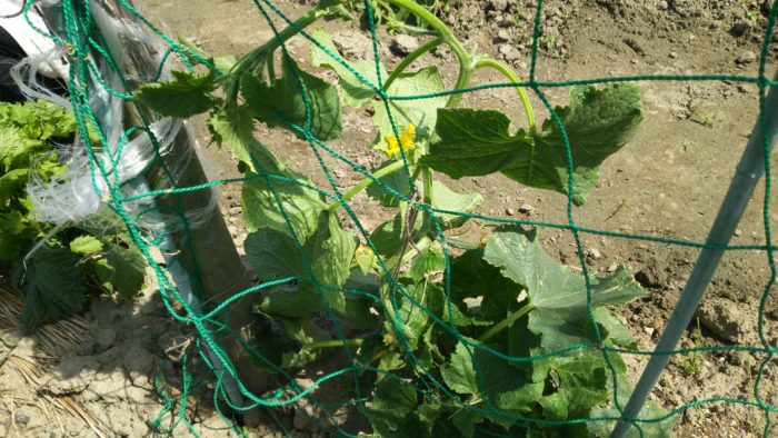 キュウリに、実がなり始めました。