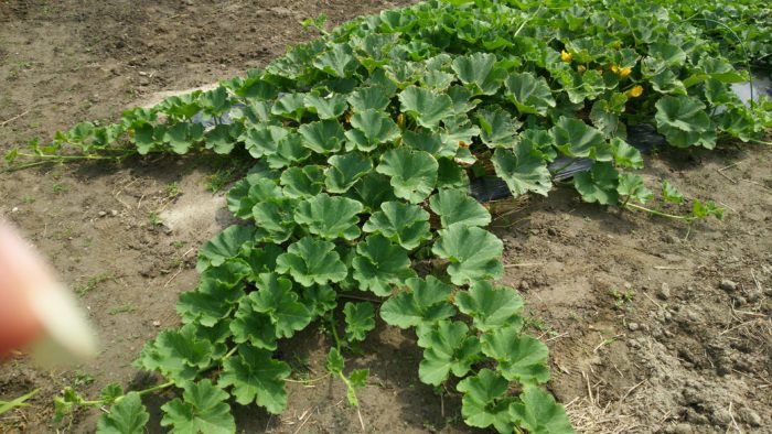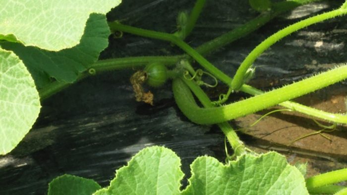 畑をはい回るカボチャのつる。