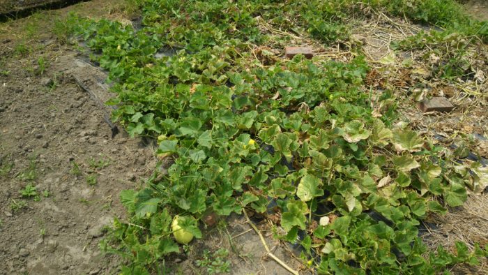 だんだん枯れてきた地上部。まだ、ところどころにウリはあります。まだ緑だけど。
