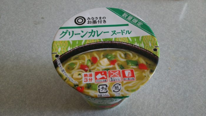 今日は、西友のブランド「みなさまのお墨付き」のグリーンカレーヌードルを食べました。