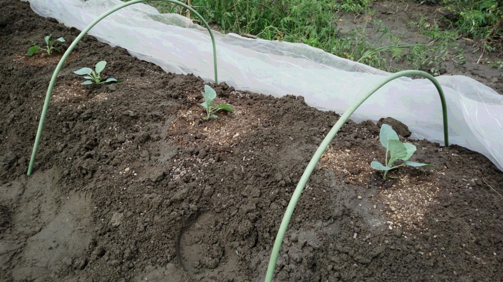 畑にキャベツとブロッコリーを植えました。