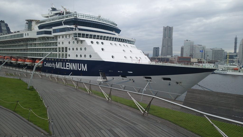 セレブリティミレニアムという豪華客船のようです。マルタ船籍?大さん橋、外人さんいっぱいでした。