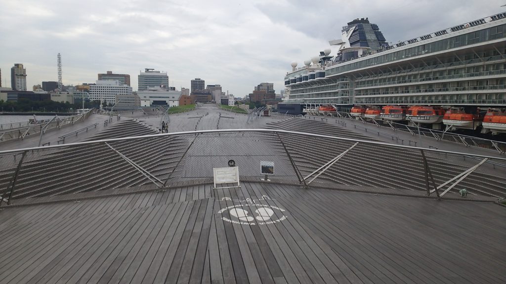 大さん橋にある、横浜三塔を一望できるビューポイントですが、船によって視界が妨げられて、県庁の塔しか見えませんでした。残念。