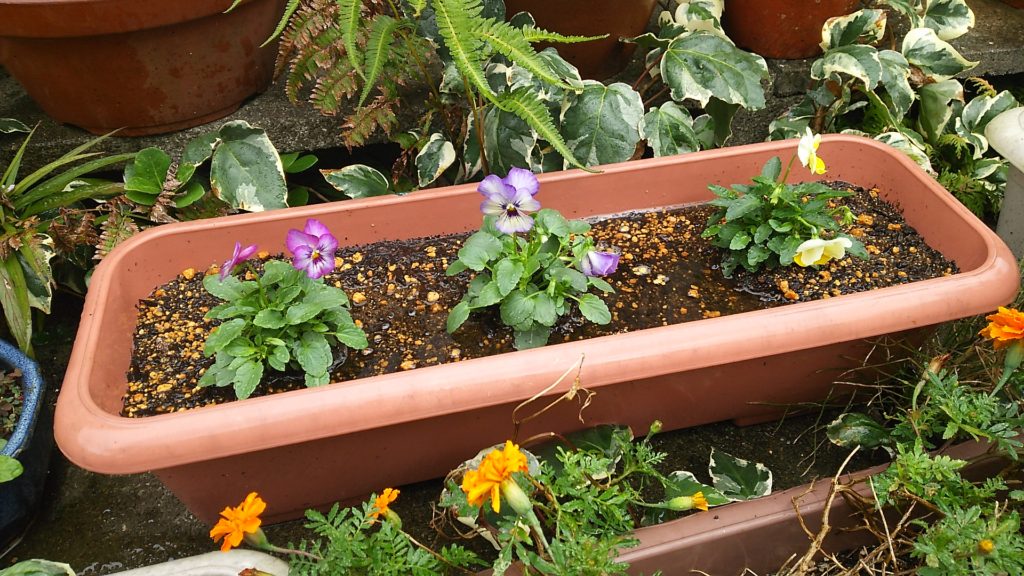 花壇に、スミレを植えました。