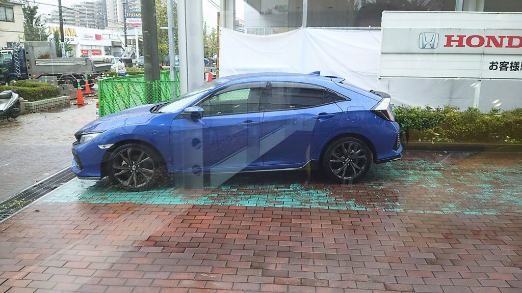 青い、シビックHBが!!。この青色は、HBにしかない色です。カッコイイ。セダン派の私もHBに心が揺らぎます(w