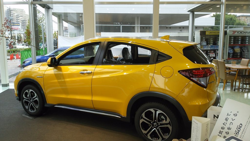 おなじみの、黄色いヴェゼル。その先に・・・。