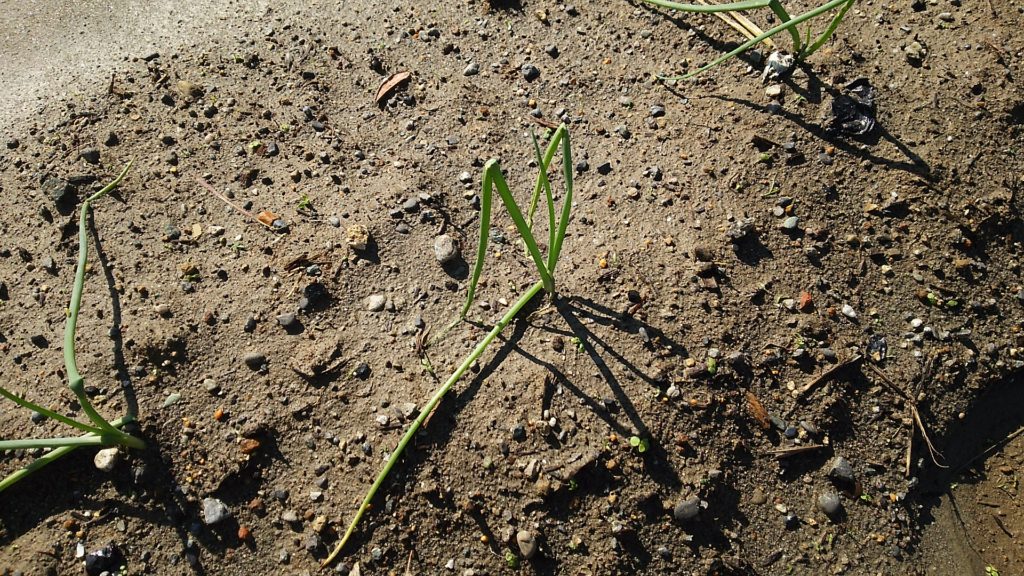 少し前に植えた玉ねぎの苗が、少し大きくなりました。