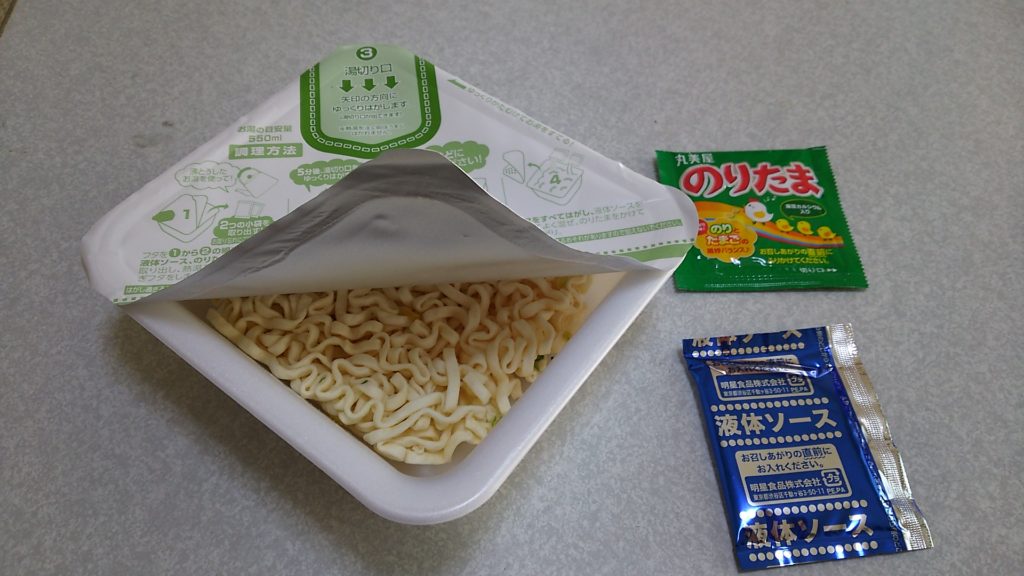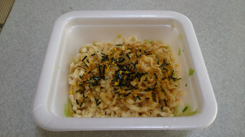 今日は、のりたま焼うどんだし醤油味を食べました。