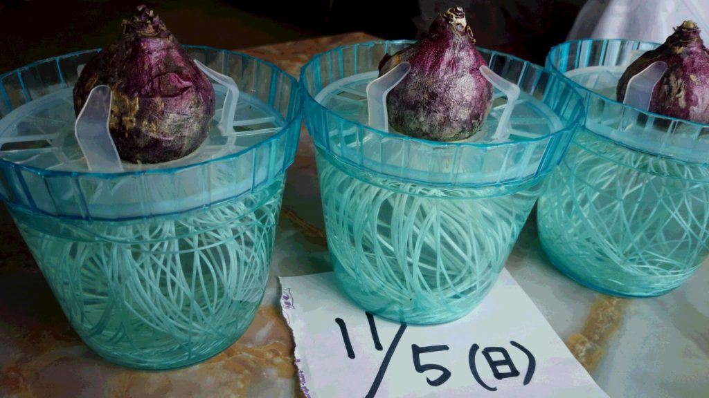 ヒヤシンス成長中です。
