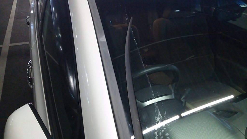 フロントガラスの横に止めてあるモールがはがれてしまいました。経年劣化かなああ。