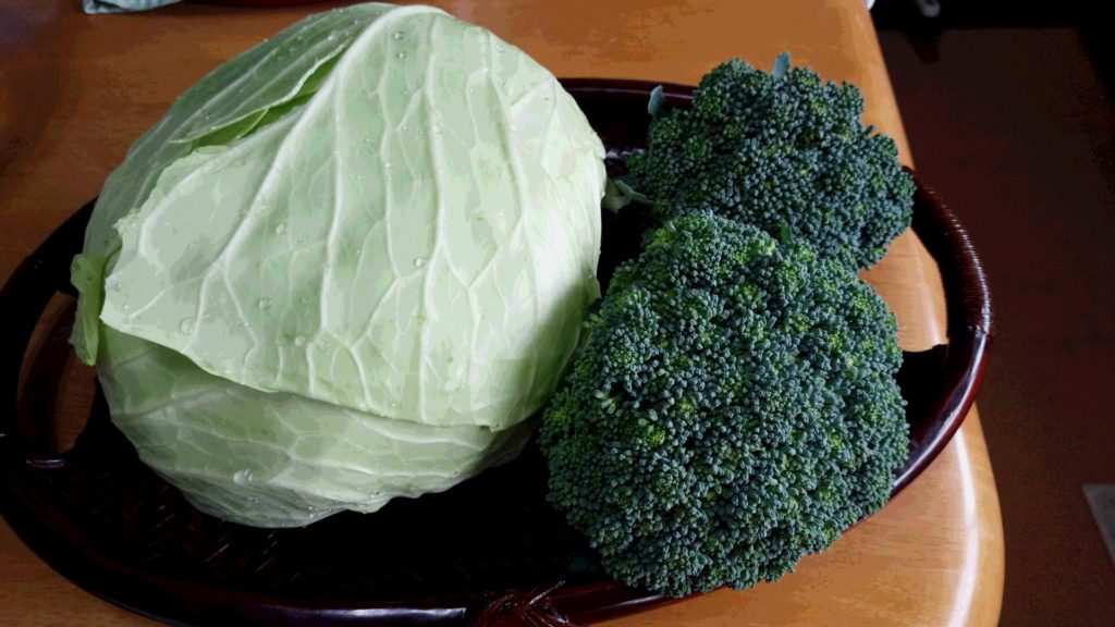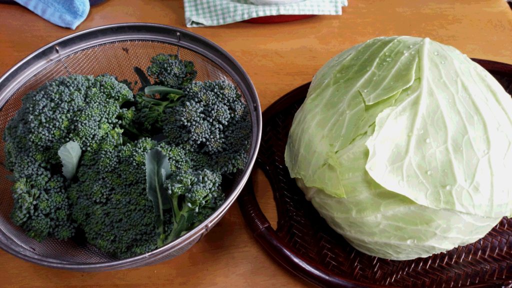 ブロッコリーとキャベツを収穫しました。
