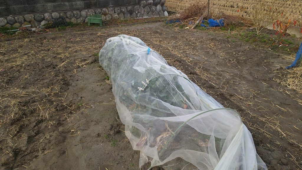 寒さ除けと虫よけに、ビニールで覆いをしています。