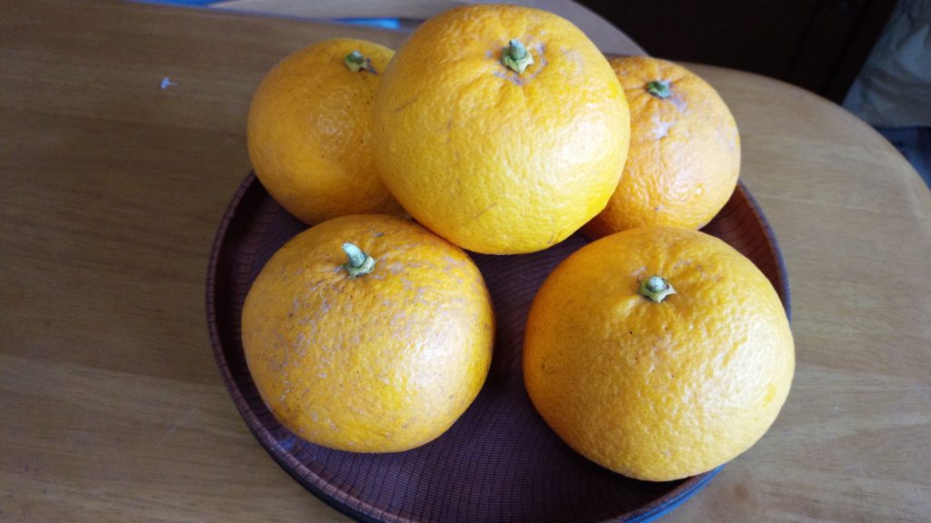立派な甘夏が収穫できました。取り立ては酸が強いので、少し寝かせます。