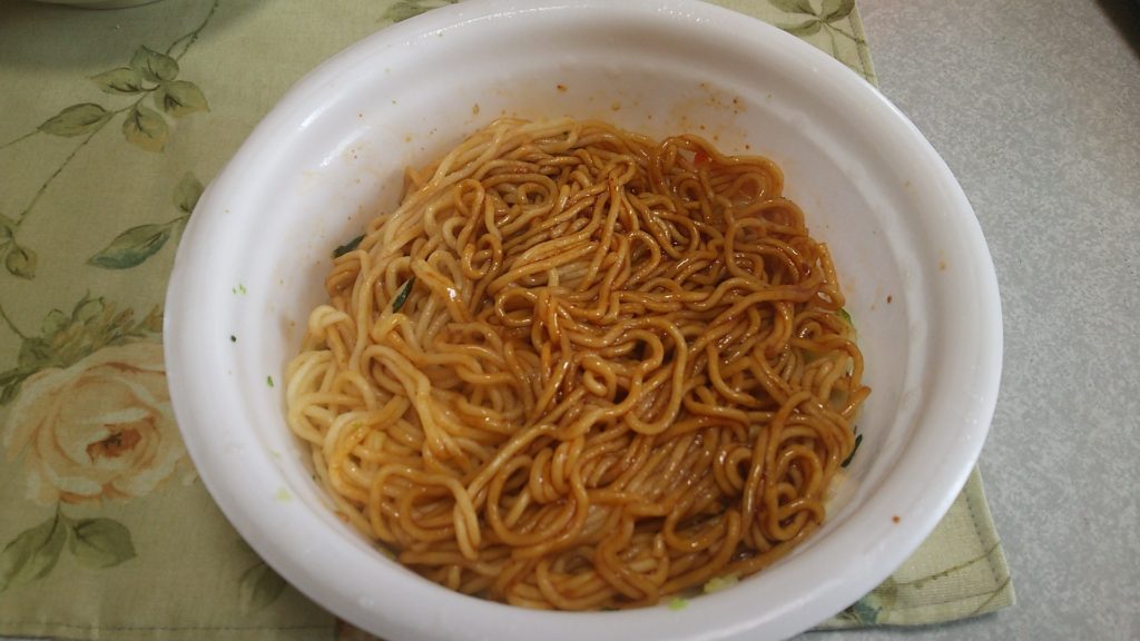 熱湯3分で完成。食べてみると・・・。辛い。けど結構うまい。