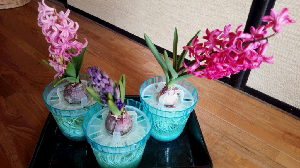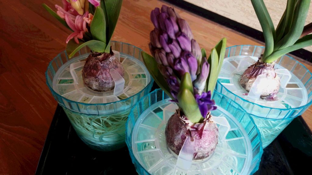 3/3 なかなか咲かなかった、ヒヤシンスの3株目ですが、ついに咲き始めました。
