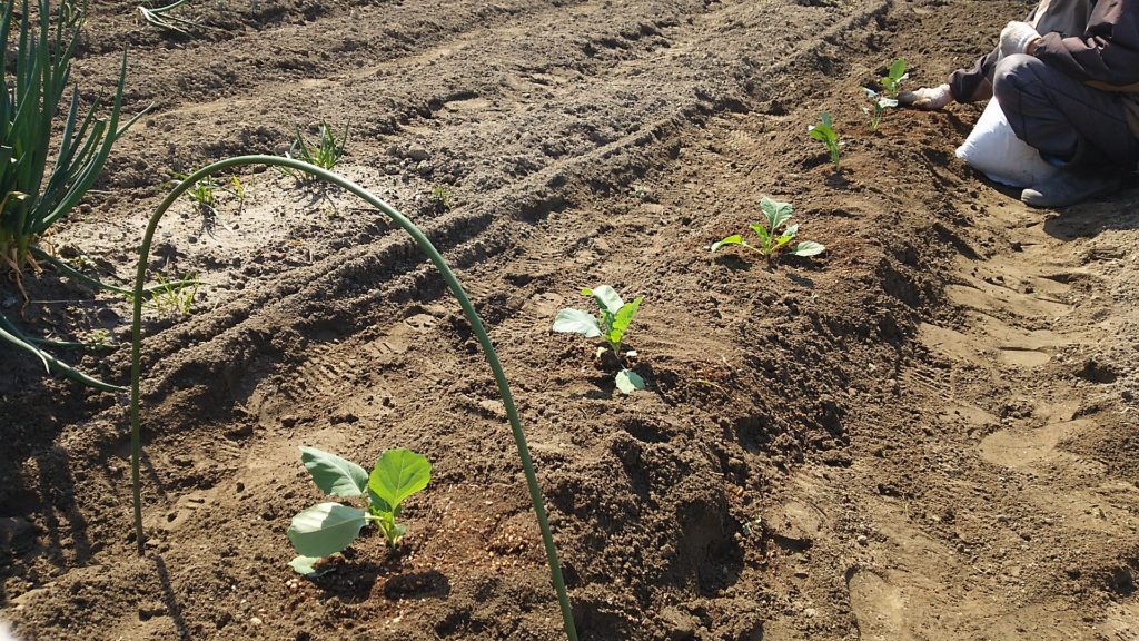 畑にブロッコリーとキャベツを植えます。