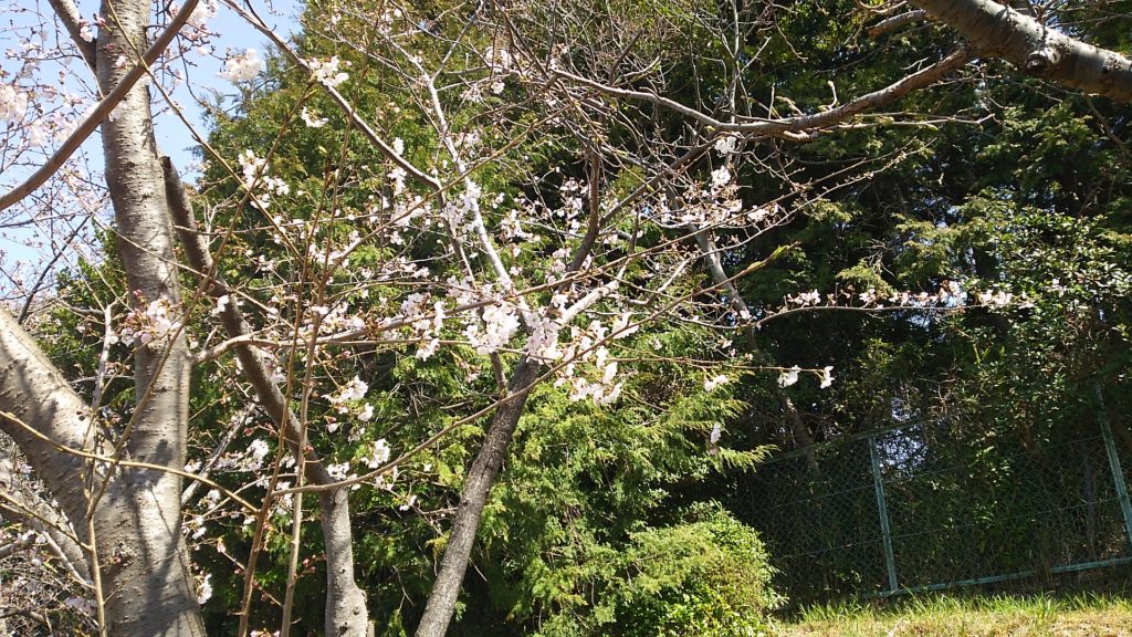 桜の木を剪定してあるので、去年よりは木が小さくなってしまいましたが、立派に咲きました。