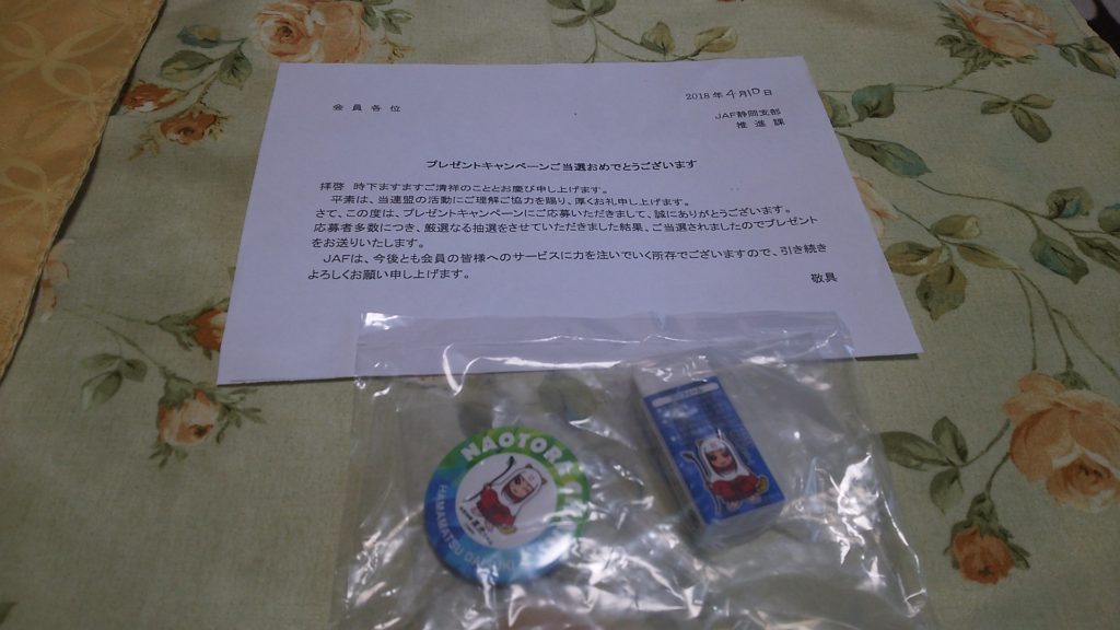 JAF静岡支部のプレゼントキャンペーンなのは間違いないのですが。