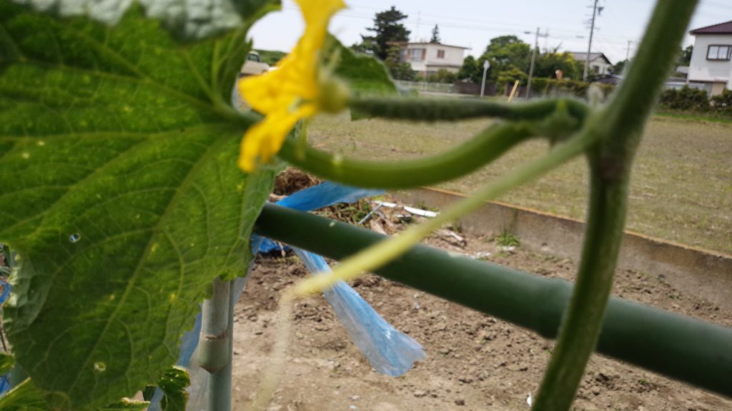 あ、写真がぼけてますが、キュウリの現状です。