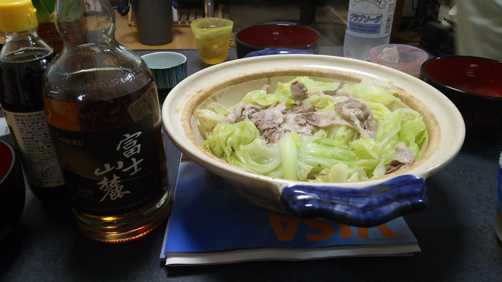 お昼は、豚肉とキャベツのミルフィーユ鍋。