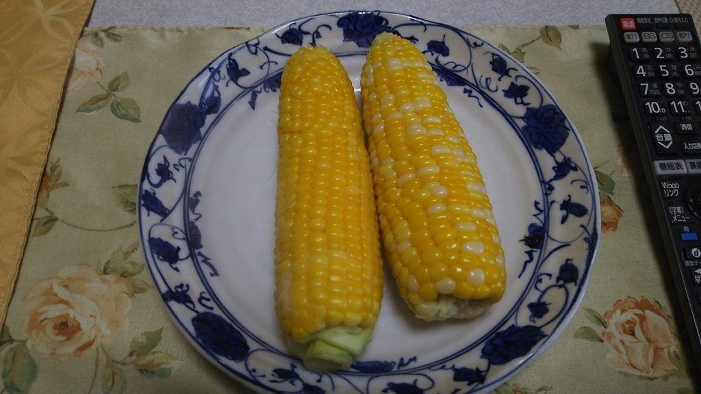 今年の初物、トウモロコシを食べました。
