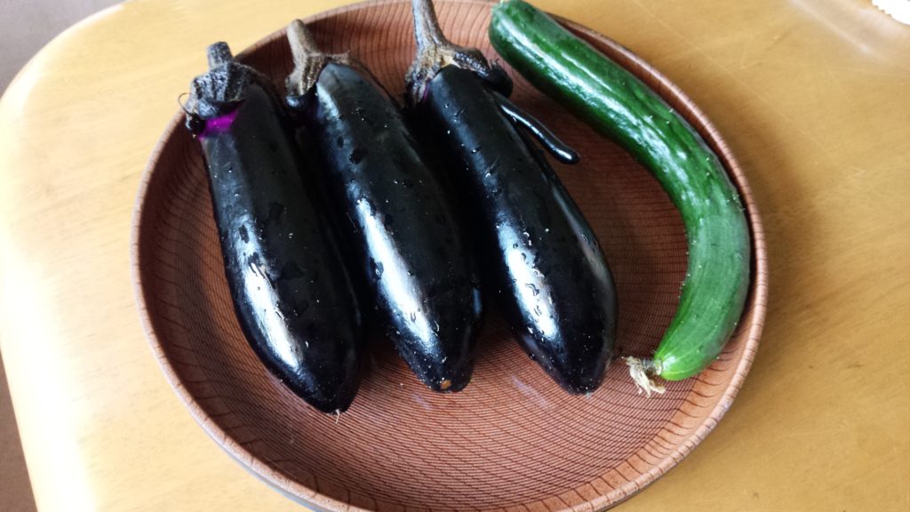 今日は、キュウリとナスが収穫できました。