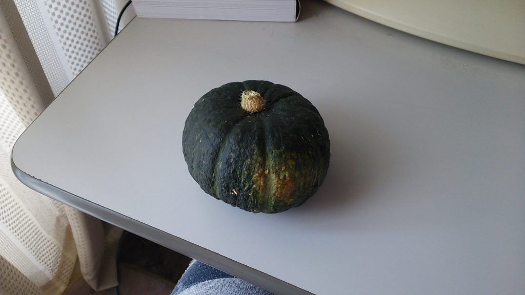 つるが枯れてきたら収穫時ということだったので、小さなカボチャですが一つ収穫。
