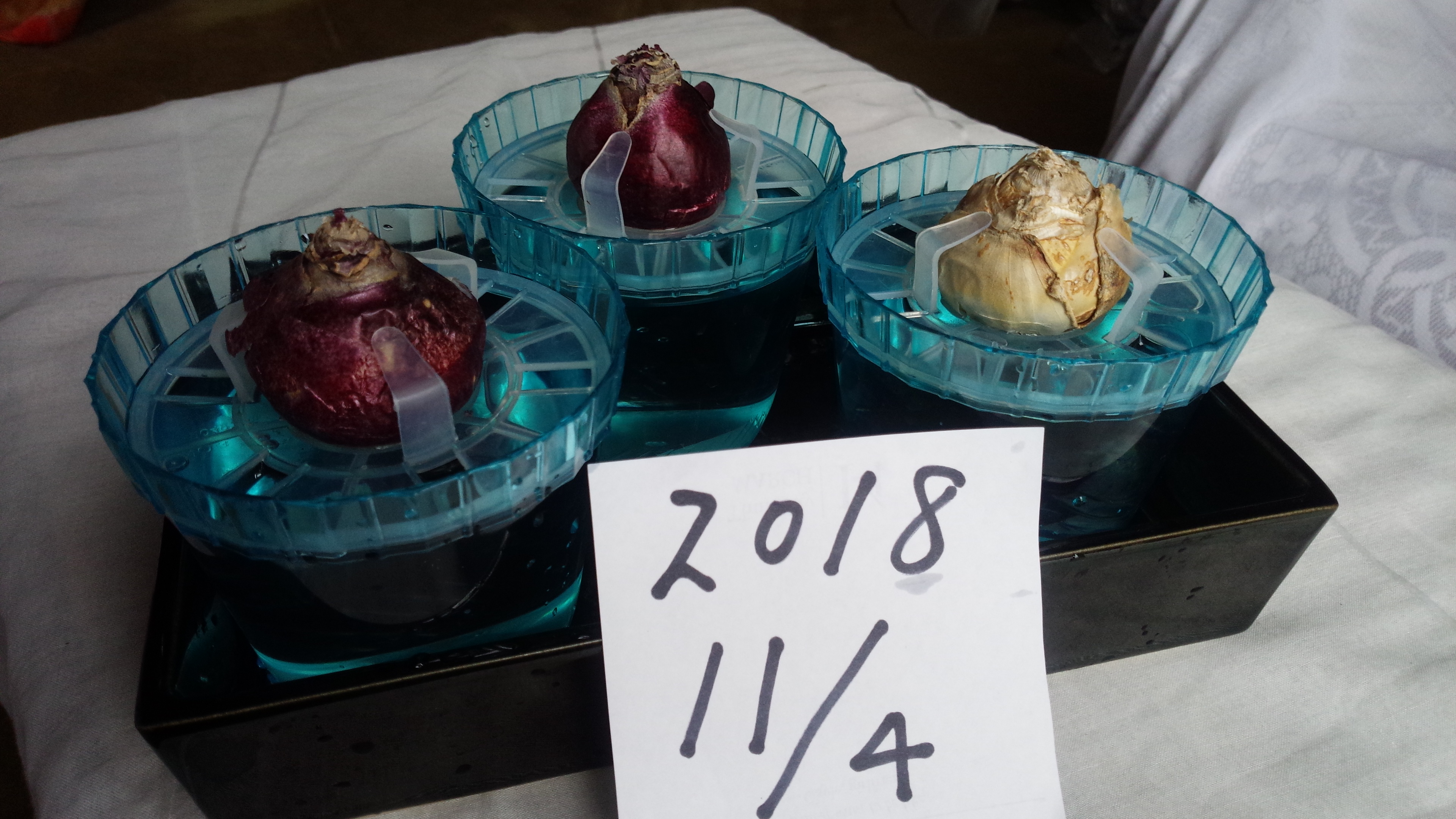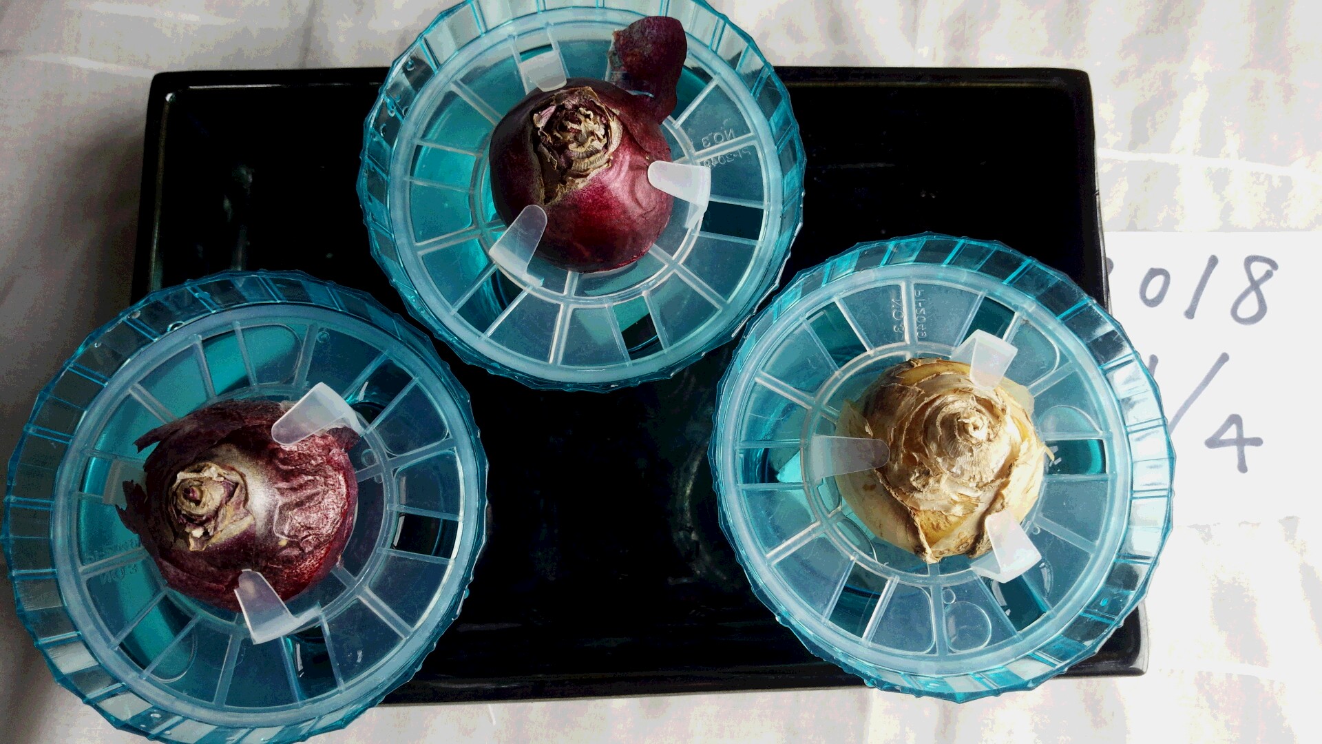 今年も、ヒヤシンスの水耕栽培を始めました。